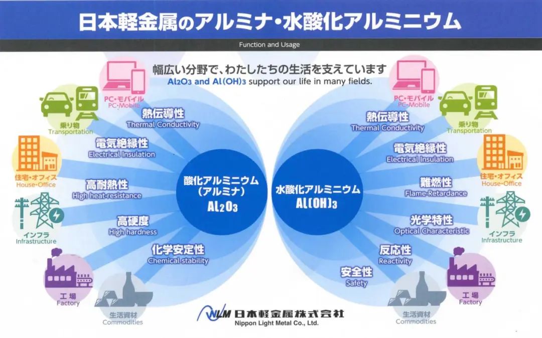 日本輕金屬(Nippon Light Metal)化學品氧化鋁及氫氧化鋁,具有卓著的物理性能,優(yōu)異的化學性能,作為陶瓷耐火和磨料的原料,其產(chǎn)品典型特征種類清晰,應用方向明確細分: